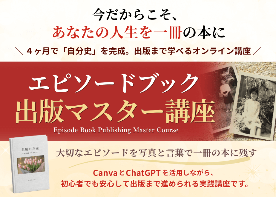【初心者向けオンライン講座】写真とエピソードでつづる“自分史”を1冊の本としてAmazonから出版する講座。